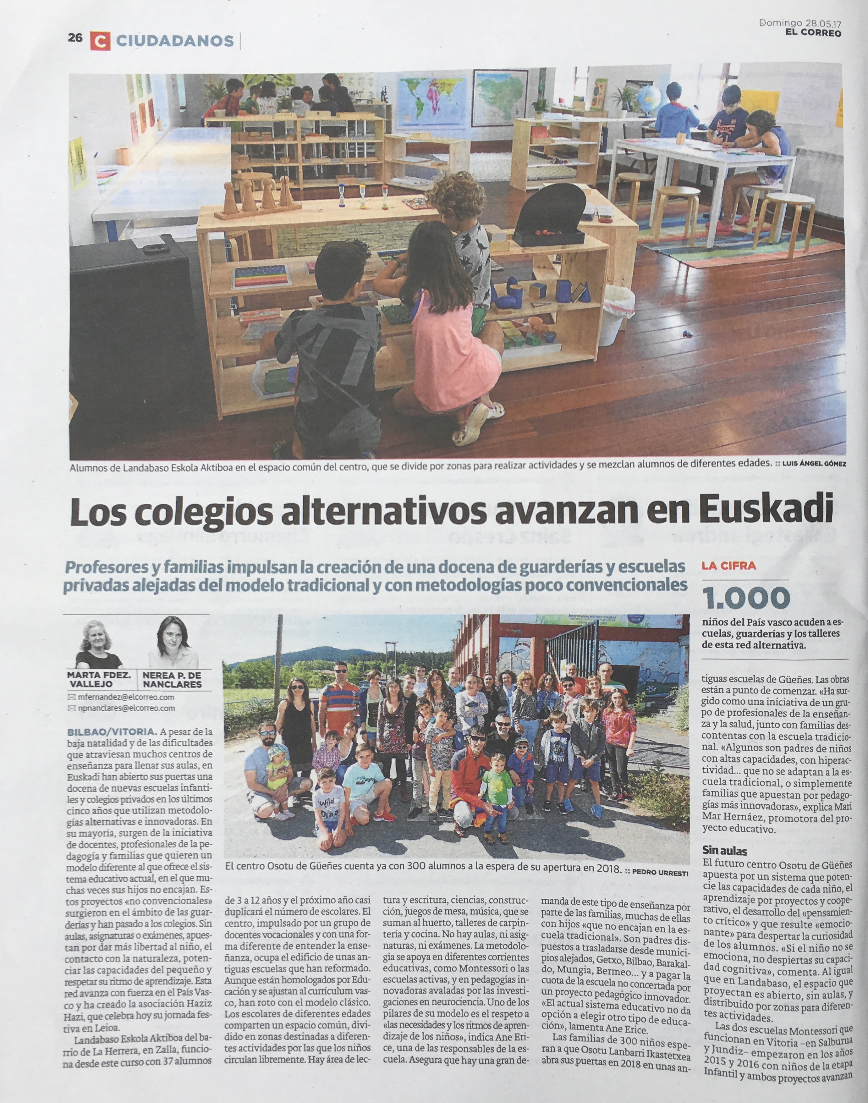 Colegios alternativos avanzan en Euskadi · IMG p26 y IMG p27 · PDF p26 y PDF p27