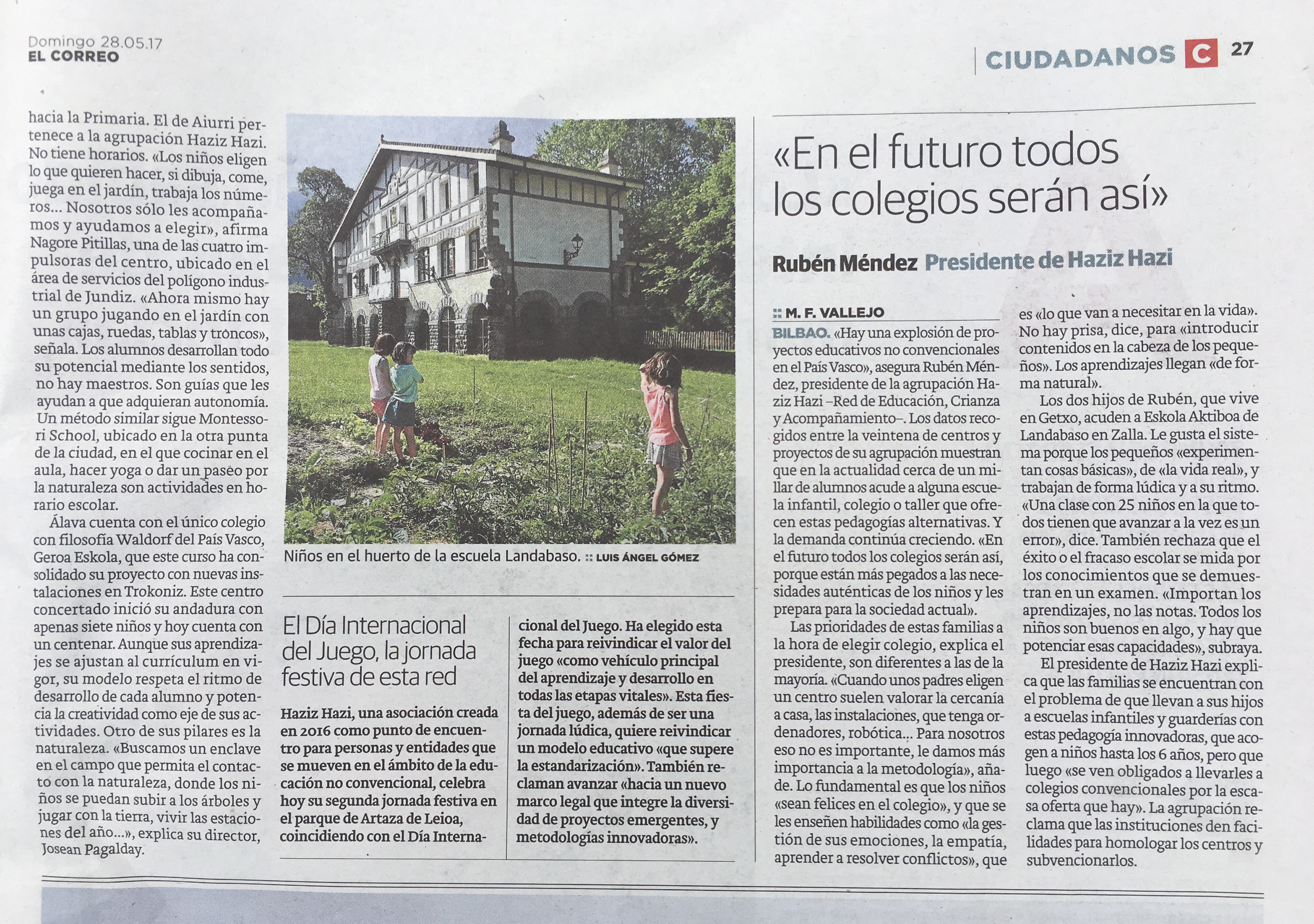 Teleberri informativo de Eitb muestra la tercera edición de la fiesta jolasGUNE de la red HazizHazi (Red de educación, crianza y acompañamiento) en Errenteria, Gipuzkoa. Enlace a vídeo en youtube.