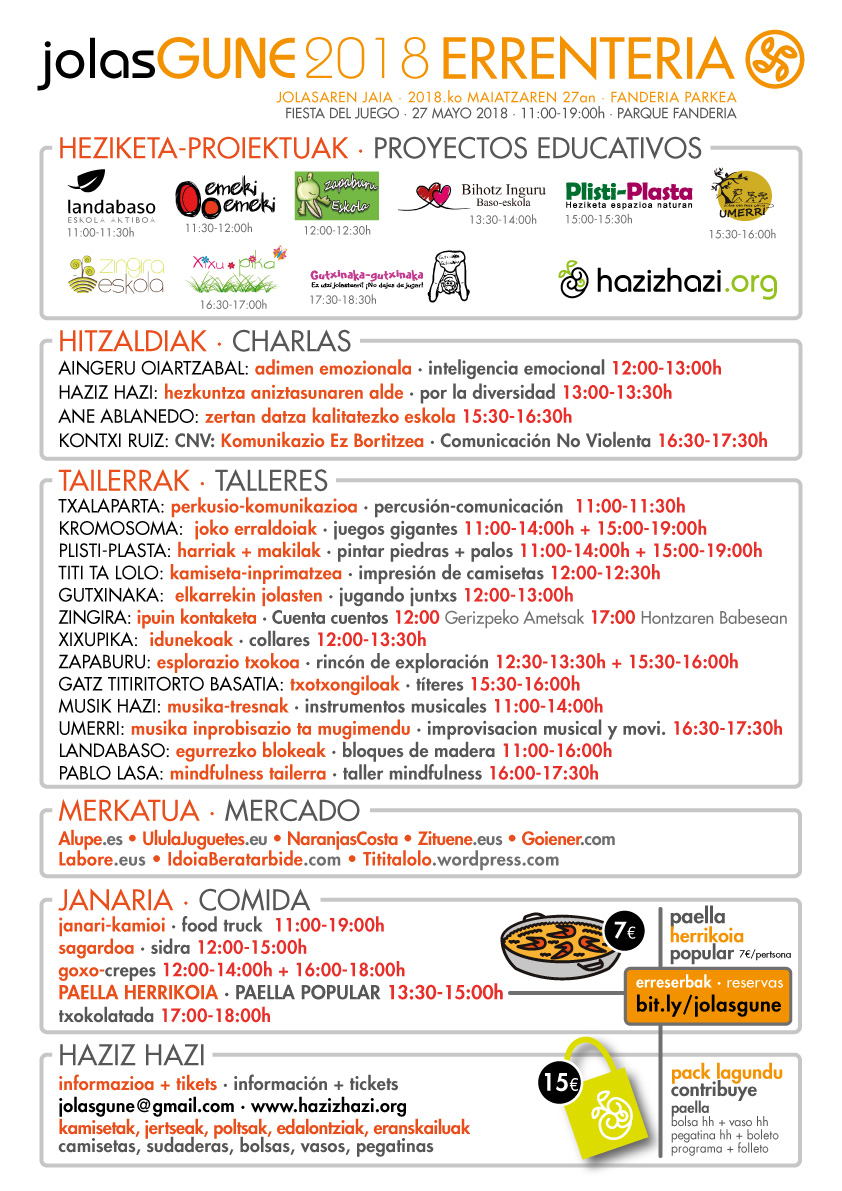Errenteria acogerá el domingo la fiesta jolasGUNE de la red educativa Haziz Hazi / Errenterian izango da aurtengo Haziz Hazi hezkuntza sarearen ‘jolasGUNE’ jaia, igandean
