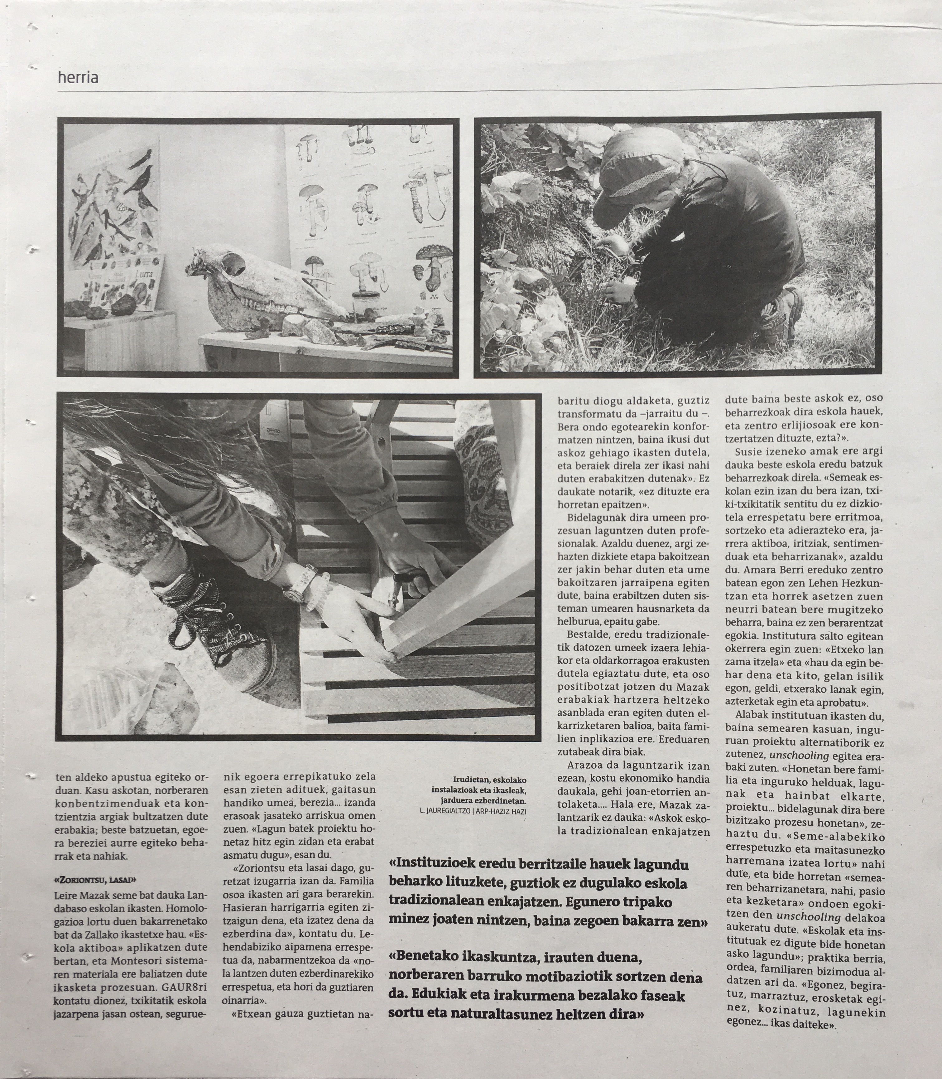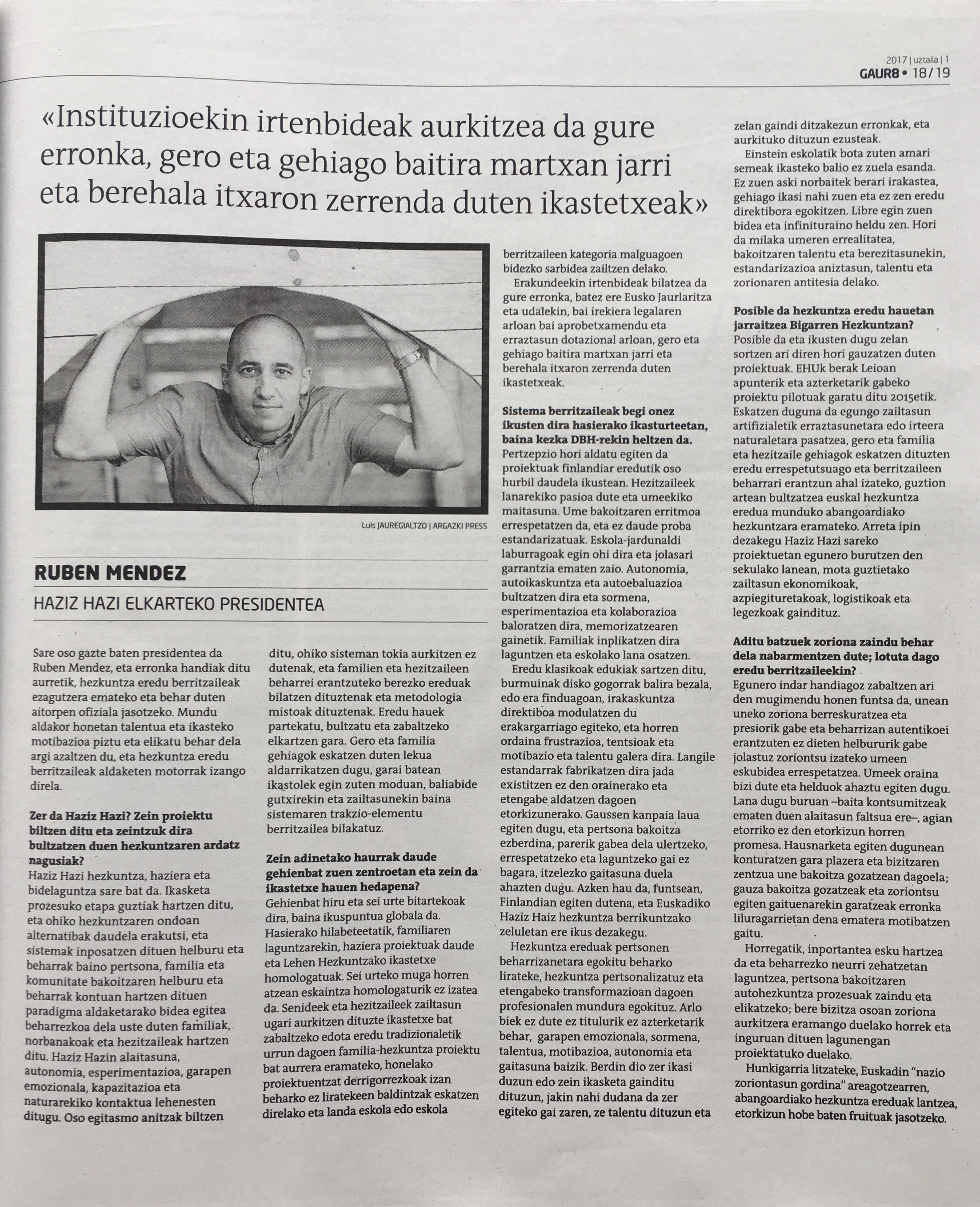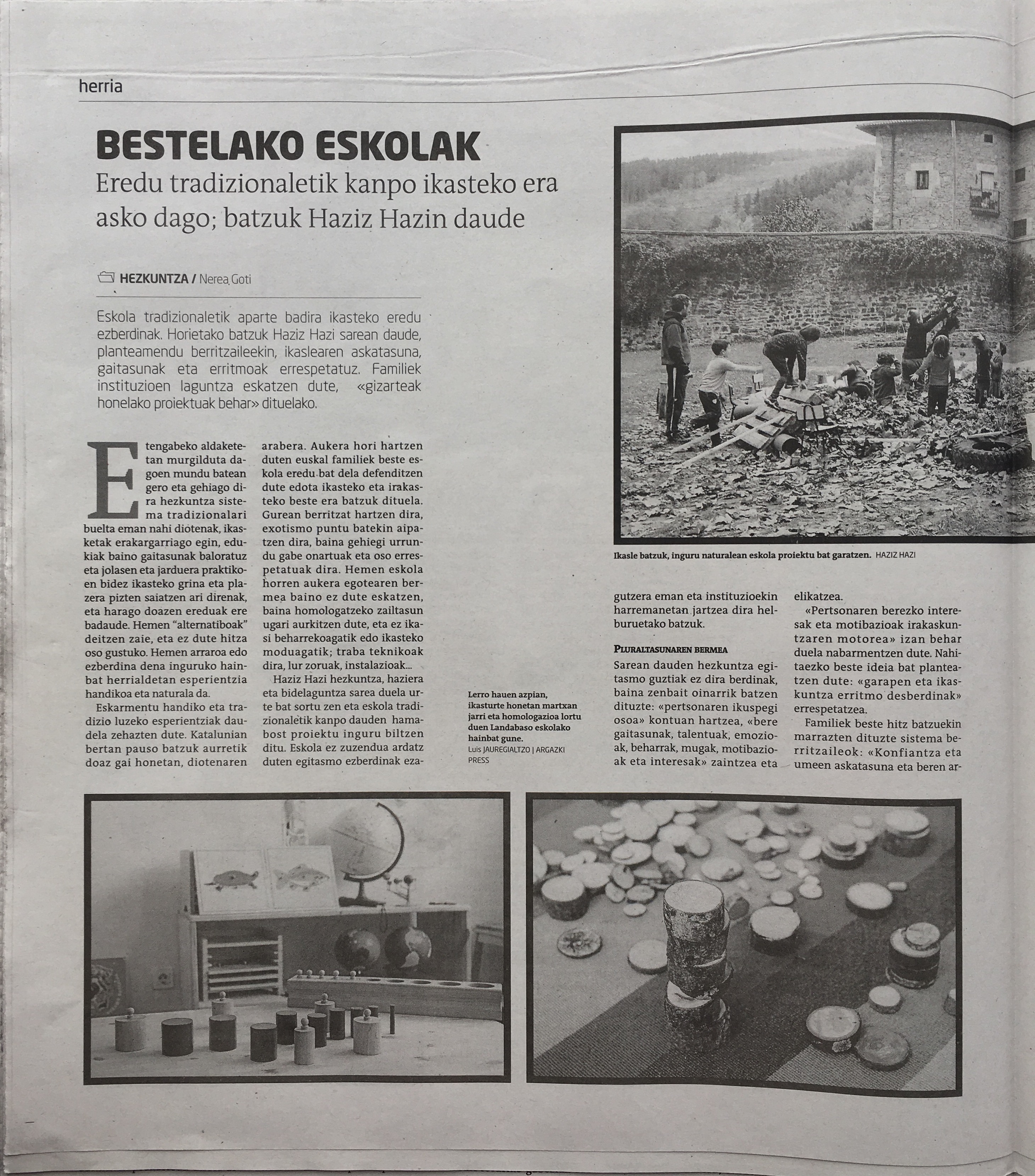 Ospakizun hau, adin guztietara zuzenduriko ekimen ludikoa izateaz gain, hezkuntza eredu anitzak biltzen dituen hezkuntza sistema proposatzen du. Era berean, familia eta hezitzaileek eginiko esfortzutik hazi berriak diren alternatiba eta berrikuntza pedagogiko zelulak integratu nahi ditu. Proiektu hauek, nolabait, egungo errealitate sozialak dituen hutsune eta arazoei erantzuten baitiote. Continuar leyendo “Haziz hazi hezkuntza sareak, bere hirugarren jolasGUNE ospatuko du Errenterian hezkuntza aniztasunaren aldeko proposamenekin”